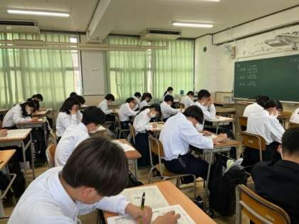 1年生にとっては最初の定期テストです。時間配分を考えながら、しっかりと解答しています。
