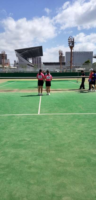 女子1ペアの1試合目は西淀中学校との試合で、勝利で初戦を飾りました。次は四天王中学校との試合です。