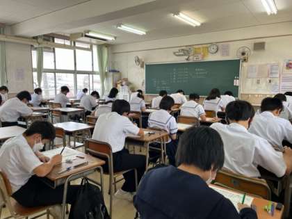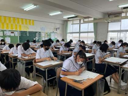 3年生は、1回目の実力テストを実施しました。1・2年生で学習したことも含めて、どの程度理解しているのかを確認します。1・2年生の学習内容など、これからも計画的に家庭学習を進めましょう。
