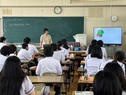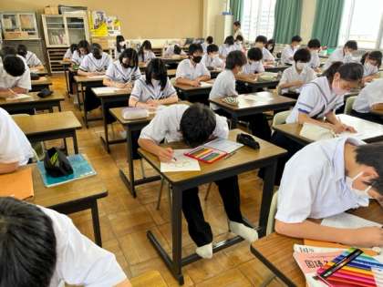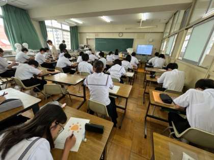2年生「美術」の授業の様子です。ゆるキャラ制作を進めています。この時間で完成です。色えんぴつで着色しカラフるなゆるキャラができました。どのゆるキャラがグランプリに輝くのか楽しみです。