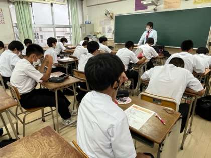 「目指せ!なにわの商人」という内容で、自分の店を持ったつもりで考え、実践的に学びました。