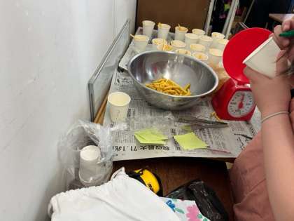 模擬店の企画・準備・運営を通してコミュニケーション力などの伸長につなげています。チケットをつくり、接客を行い、楽しみながら学びました。