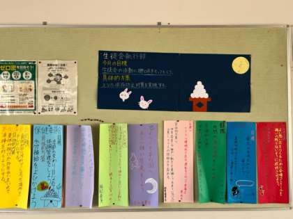 生徒会各種委員会で決めた「9月の目標」が玄関に掲示してあります。目標・具体的方策を確認してみましょう。
