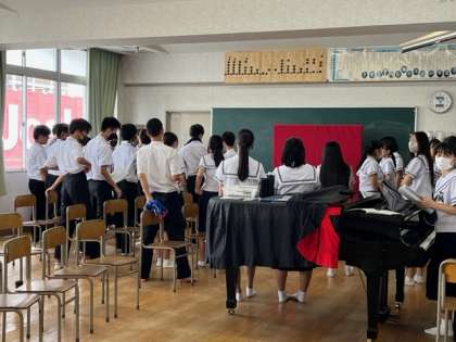 3年生の合唱練習の様子です。区民ホールの空調故障のため、本校の体育館での実施となりますが、体育館いっぱいにすばらしいハーモニーを響かせたいと思います。クラス練習、パート練習を重ねて、ハーモニーを完成させます。