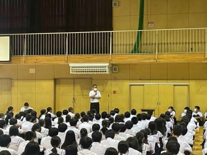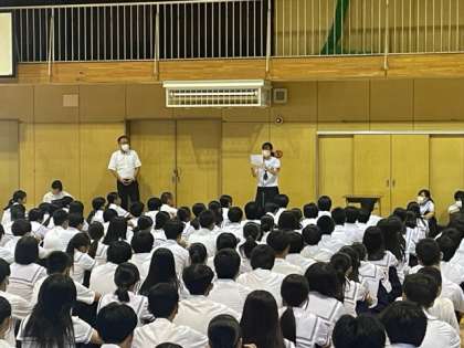 先週に行った生徒議会の議会報告では、今月の目標と具体的方策の報告があり、選挙管理委員からは今後の生徒会選挙の流れについて説明がありました。