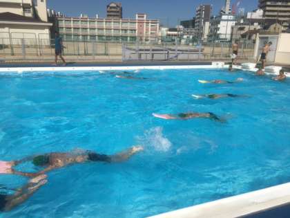 3年生は、男子体育の授業で、水泳です。バタフライに挑戦し、基礎のドルフィンキックの練習に励んでいます。
