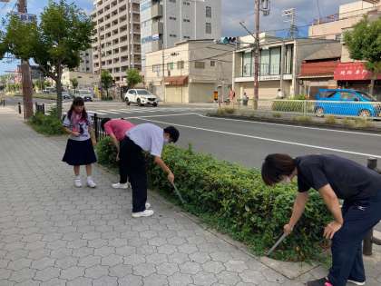 いつもは生徒会主催で行いますが、今日は3年生男子と2年生女子2名の有志で行いました。相変わらず、大通り沿いにはタバコの吸殻が多く、空き缶やペットボトルも目立ちました。