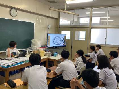 全学年で取り組んでいる「ゆるキャラグランプリ」の発表と投票、次回からの取り組み「点描画」の説明がありました。