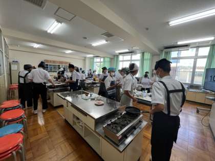保健体育、家庭科(調理実習)、技術科の授業の様子です。残暑厳しいですが、学習に熱心に取り組んでいます。