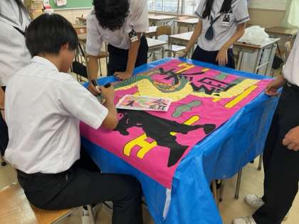 学級旗を制作しています 9/22