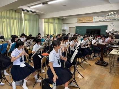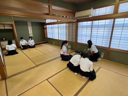 吹奏楽部は、文化祭に向けての全体練習をしています。また、茶道部は10月に行われる総合文化祭でのお点前披露に向けて練習をしています。