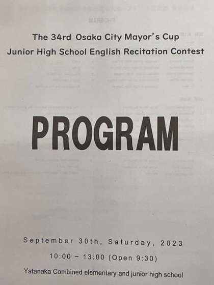 第34回大阪市長杯中学生英語暗唱大会 9/30