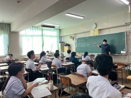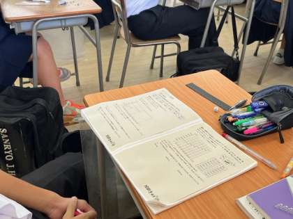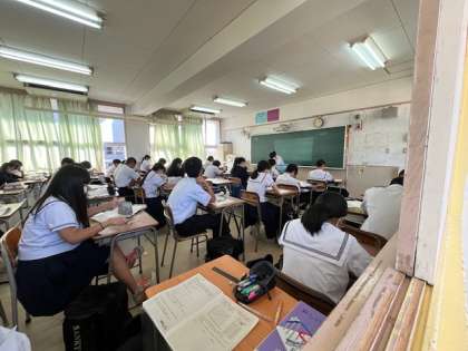 2年生・3年生の「数学」の授業の様子です。理解力を深め、考える力をつけ、「深い学び」に結びつけています。2年生では、学級を2分割しての少人数での授業展開を行っています。