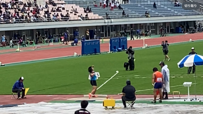 14m01で12位。惜しくも決勝を逃しました。しかし、全国大会の記録を大幅に上回る記録で大健闘だったと思います。