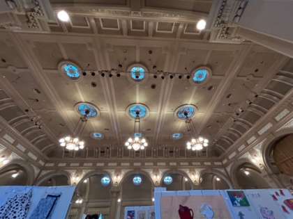 各中学の作品展示、舞台発表を行っています。本校の生徒も見に来ていました。また、大阪市中央公会堂の建物も素晴らしい文化財です。一見の価値があります。