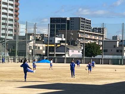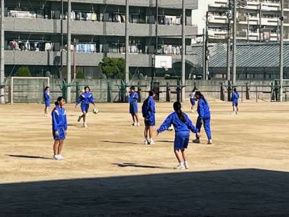 3年生女子体育の授業の様子です。サッカーについて基本的な学習を行っています。ボールリフティングの仕方などを通して、ボールのけり方を学んでいます。昨日から気温が下がり寒くなりました。しっかり体をほぐしてけがのないようにしましょう。