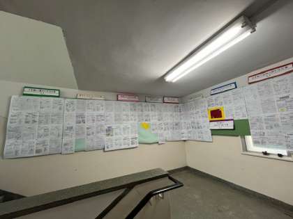 1年生は、総合的な学習の時間を使い「職業調べ」を行いました。まとめたものを1年生の階段踊り場に掲示しています。自分の将来像を想像しながら、その職業に求められる資質や資格について理解しました。