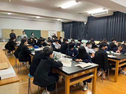 この後、教科ごとに分かれ、中学校と小学校とで研究協議を行います。小中が連携して、より良い授業づくりに努めます。
