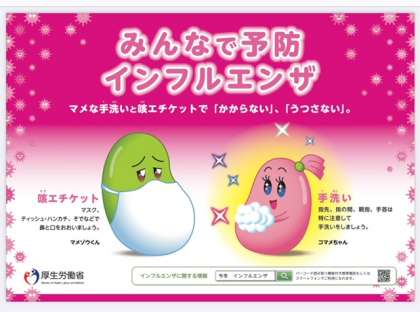 インフルエンザは、感染した人が咳やくしゃみなどて、ウイルスを含む飛沫(0.005mm以上の水滴)が飛散し、これを健康な人が鼻や口から吸い込み、ウイルスを含んだ飛沫が粘膜に接触することによって感染します。