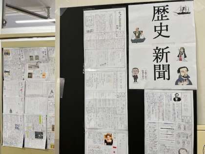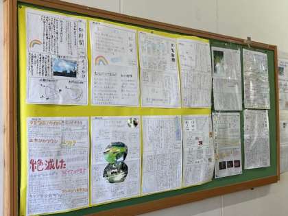 各階の廊下に展示している作品です。保護者の方は、懇談会で来校されたときにご覧いただきますようよろしくお願いします。