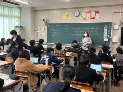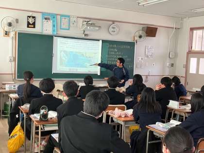 数学では立体の体積や表面積、英語ではタブレットで調べながらの英作、社会では世界各国の様子を映像で確認しています。