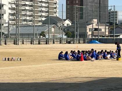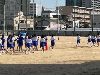 2年生保健体育の授業の様子です。トラックを走る生徒には、「頑張れ!!」と声援がおくられています。自己ベスト更新を目指しましょう。