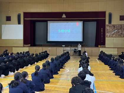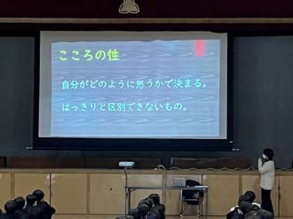 2年生の「総合的な学習の時間」です。今日は、大阪府助産師会から助産師の方にゲストティチャーとして来ていただき「性」について学習しました。