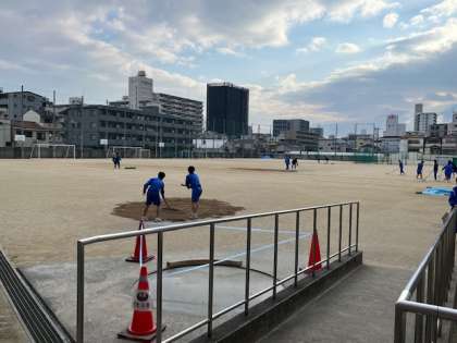 おはようございます。昨日に降った雨で、運動場がぬかるんでいるため、朝早くから後輩たちが整備をしています。卒業生が式後に運動場で写真撮影もできるよう頑張ってくれています。