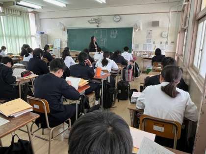 2年生「国語」「英語」の授業です。最初の授業では、学習の仕方やノート、プリントの使い方などの説明もしています。主体的に授業に取り組んでいきましょう。