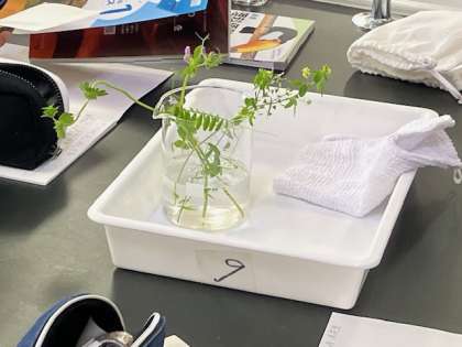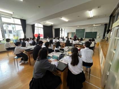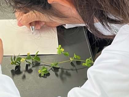 1年生「理科」の授業です。春の植物の観察をしています。細かいところまで観察するためにスケッチをします。美術のスケッチとは違い、影をつけず、線で描いていきます。
