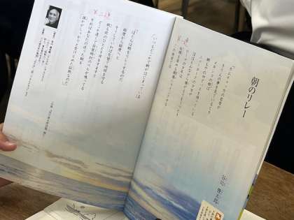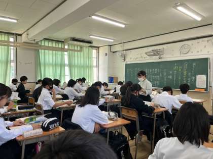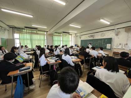 1年生「国語」の授業です。谷川俊太郎の詩「朝のリレー」を学習しています。「いつもどこかで朝が始まる」時差があるからリレーのようになります。素敵な表現です。
