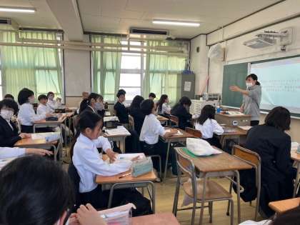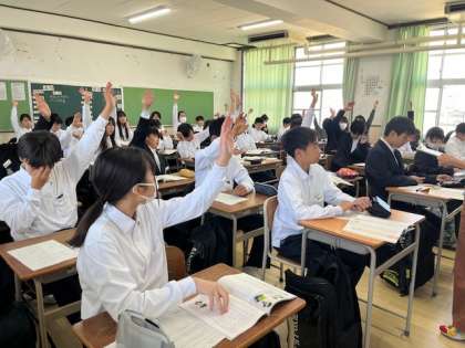 1年生「道徳」の授業です。いろいろな視点で多面的・多角的に考え、意見を出し合っています。他の人の考えも聞き、また自分で考えることで、いろいろなことへの「気づき」が深くなっていきます。