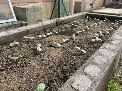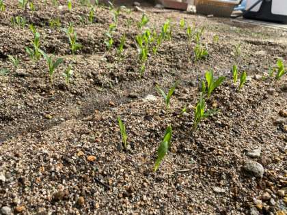「ネモフィラ」が咲きました。楽しみにしていたので、うれしいです。「きゅうり」も「とうもろこし」も順調に育ってきました。これからも楽しみです。