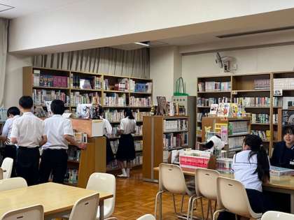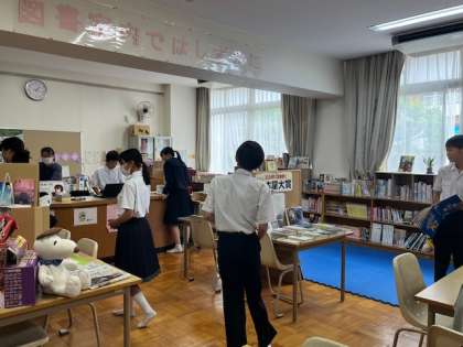 昼休みの図書館の開館です。給食後の昼休み1時10分から25分までと時間が短いですが、多くの生徒が本の貸し出しにも来ています。「朝の読書」で読む本など、積極的に貸りてみましょう。