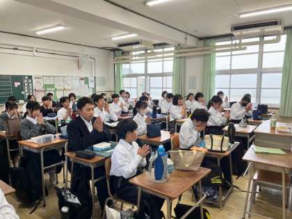 今日は、給食をつくっている校区の小学校が代休のため、家から昼食の用意をして登校しています。お弁当をつくってもらっている生徒が多いと思いますが、つくる手伝いなどはしてみましょう。中学校は「大人になる準備の学校」です。自分でできることを増やしてほしいです。