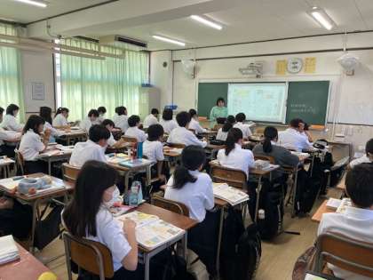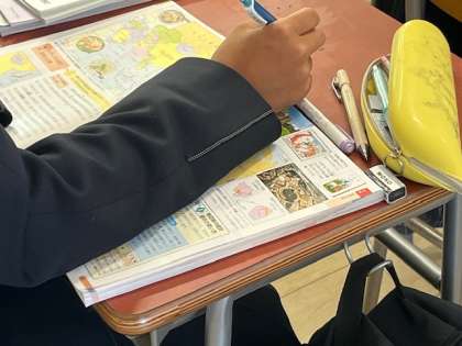 1年生「社会科」の授業です。1学期中間テスト【5/16(木)・17(金)】前になってきました。ポイントを復習しています。漢字で覚えておかなければならない語句などよく確認しておきましょう。
