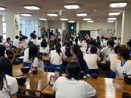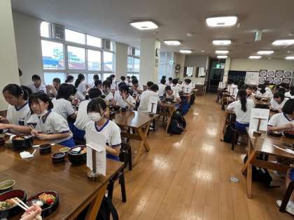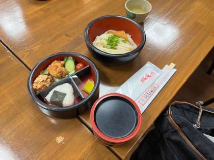 昼食です。うどんづくりで、体を使いました。うどんが美味しい!