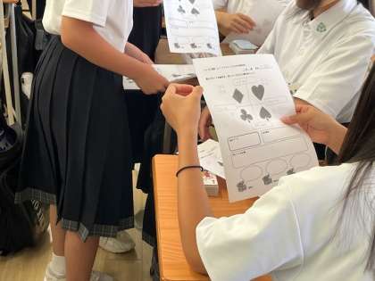 ヒューマンキャンパス高等学校から講師の先生に来ていただき、SPトランプを使って授業をしていただきます。自分の特徴・強み・弱みなどを並べて見ることができ、自分の特性を知ることができます。