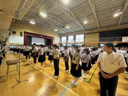 7月になりました。校長先生からは「社会を明るくする運動」非行や犯罪の防止・更生について考え、安全安心な社会をつくる運動について話がありました。また「情けは人のためならず」親切な行いがいつかは自分に戻ってくるという正しい意味を理解し、あたたかい関係を築いてほしいと話がありました。