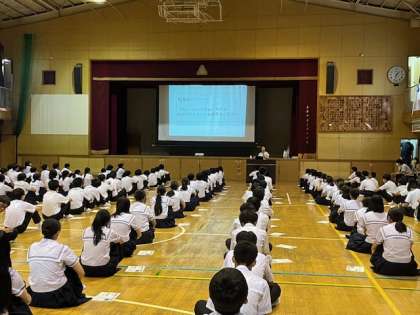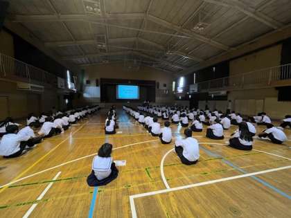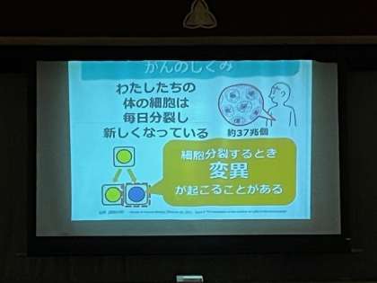 3年生は「がん」についての学習をしました。大阪急性期・総合医療センターから講師の方に来ていただき、がんのしくみ・原因・予防・治療などについて話をしていただきました。