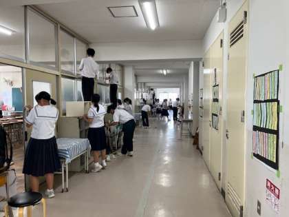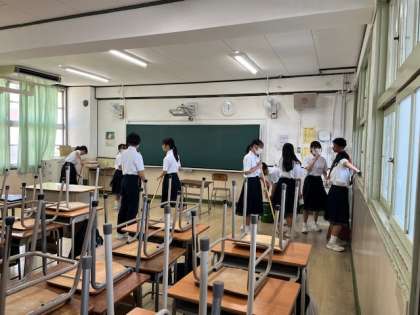 1学期末の大掃除「クリーン大作戦」です。みんなで清掃活動を行い、環境美化意識の向上を図ります。清掃終了後は、美化委員が点検し各学年最もクリーンにした学級を明日の終業式で表彰します。