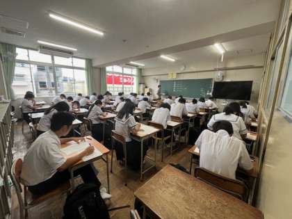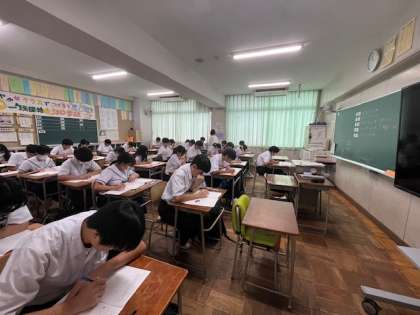 3年生は、中学生チャレンジテストを行っています。よく問題文を読み、解答しています。時間配分をよく考え、集中しています。