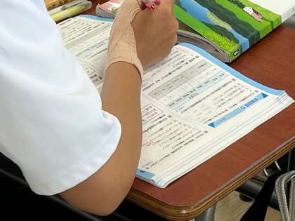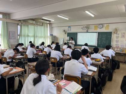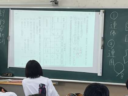 2年生「国語」の授業です。文法について学習しています。動詞・形容詞・形容助動詞には活用があります。聞きなれない用語が難しいですが慣れると簡単です。繰り返し慣れるまで繰り返し学習しましょう。