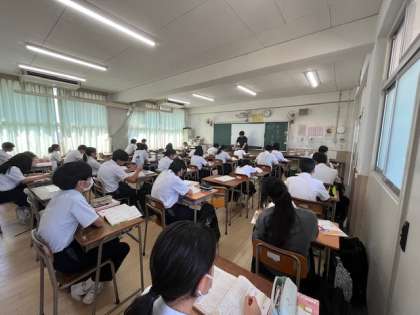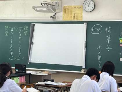 2年生「国語」の授業です。「枕草子」について学習しています。平安時代に「清少納言」によって書かれた随筆です。「春はあけぼの。やうやうしろくなりゆく山ぎは…」で有名です。NHK大河ドラマでも清少納言が登場しています。一条天皇の中宮定子に仕えていました。