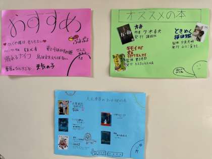 文化委員がおすすめの本を紹介しています。朝の読書の時間や家での読書タイムに読んでみましょう。昼休み、放課後の図書館に行ってみましょう。