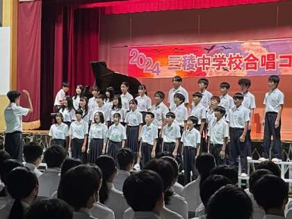 審査の結果2年5組が「金賞」🏆に輝きました。金賞の5組は明日、全学年の前で歌います。