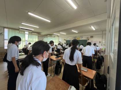10月になりました。朝夕涼しくなりましたが、日中は夏日になりそうです。校門では、生徒会役員に立候補した生徒が「朝の挨拶」をしています。投開票日は10/10(木)です。