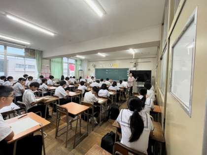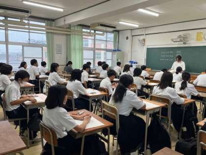 問題用紙、解答用紙が配布され、テスト開始の時刻を待っています。時間配分に気をつけ、確実に得点できるところはミスのないように。
