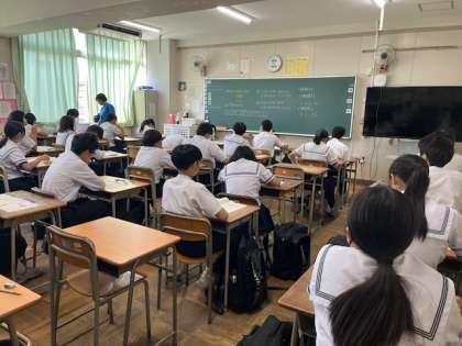 3年生の英語力調査が行われました。読む・書く・聞く・話すの4技能がどの程度、身についているかを調査します。話すについてはタブレットパソコンを使って行います。