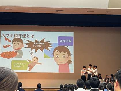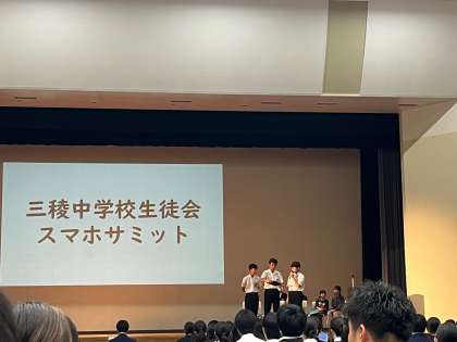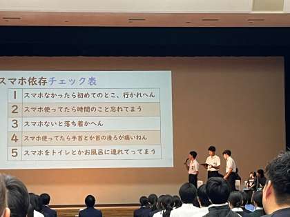 大阪市スマホサミットが開催されました。各中学校の生徒会役員が参加しています。第1部では本校は3ブロック代表として発表しました。第2部では「おとなと考えるスマホのかしこい使い方」についてグループで話し合い意見交換しました。